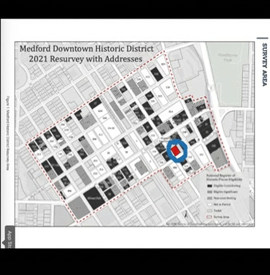 Original Image and Public Record: Circled in blue is the Craterian Theatre.